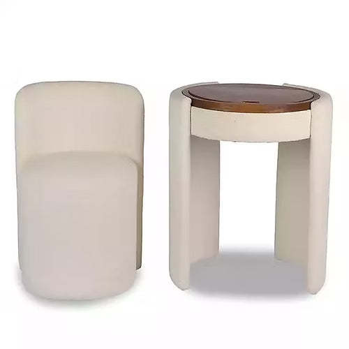 Add elegance and convenience to your daily beauty routine with this compact and exquisite Chair and Mirrored Vanity Set! Soft ivory fabric upholstery wraps the chair and vanity, complemented by warm brown wood veneer for a cozy yet modern ambiance. The flip-up mirror and hidden storage compartment keep your beauty essentials within easy reach while maintaining a clutter-free surface.