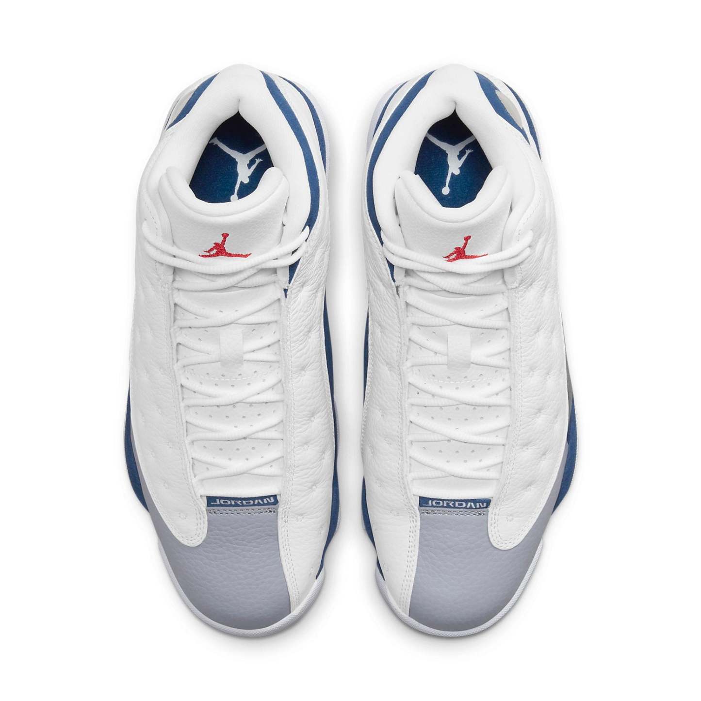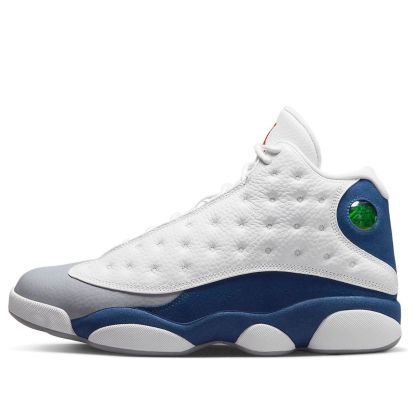 The Air Jordan 13 Retro 'French Blue' is an iconic silhouette that combines a classic design with modern features. Its white leather upper is complemented by a fire red Jumpman logo, French blue suede overlays and light steel grey accents. It is perfect for everyday wear and is sure to make a statement. The design is inspired by the original Air Jordan 13, which was released in 1997. The 'French Blue' colorway is a unique take on the classic design, making it a must-have for any sneakerhead. With its timeless style and comfortable fit, this sneaker is sure to be a hit.