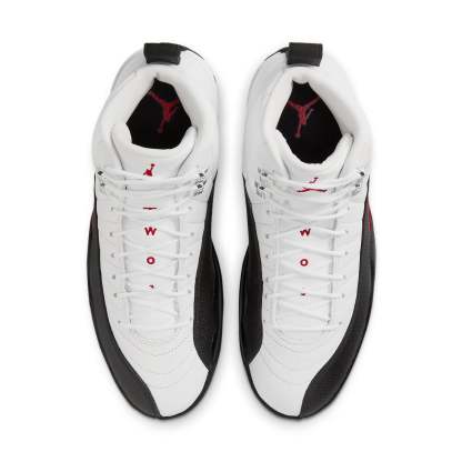 The Air Jordan 12 Retro 'Red Taxi' also kwnon as 'Taxi Flip' is a fresh take on the classic “Taxi” colorway, drawing inspiration from the original 1996 release. Crafted from tumbled white leather, the upper features radiating stitched lines and a lizard-textured mudguard in contrasting black. A crimson Jumpman logo is embroidered on the tongue, complementing the midfoot TPU overlay. Performance-wise, these sneakers boast a lightweight Phylon midsole with full-length Zoom Air cushioning for a soft feel, along with a carbon fiber spring plate for stability.