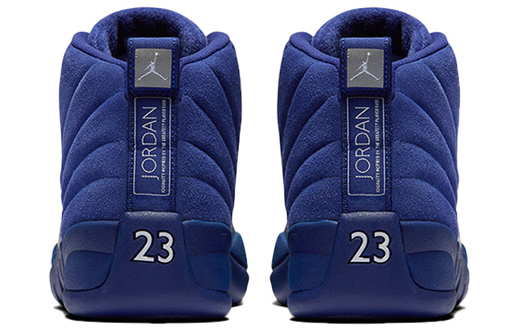 The Air Jordan 12 Retro 'Deep Royal' is a must-have sneaker for any fan of the Air Jordan line. Featuring a Deep Royal Blue suede upper, with a textured leather mudguard, and tonal outsole, this sneaker is sure to turn heads. Released in November of 2016, the design also features white and metallic silver accents and a grey carbon fiber shank, which makes it not only stylish but also functional. Whether you're hitting the court or just hitting the streets, the Air Jordan 12 Retro 'Deep Royal' is a great choice for any sneaker enthusiast.