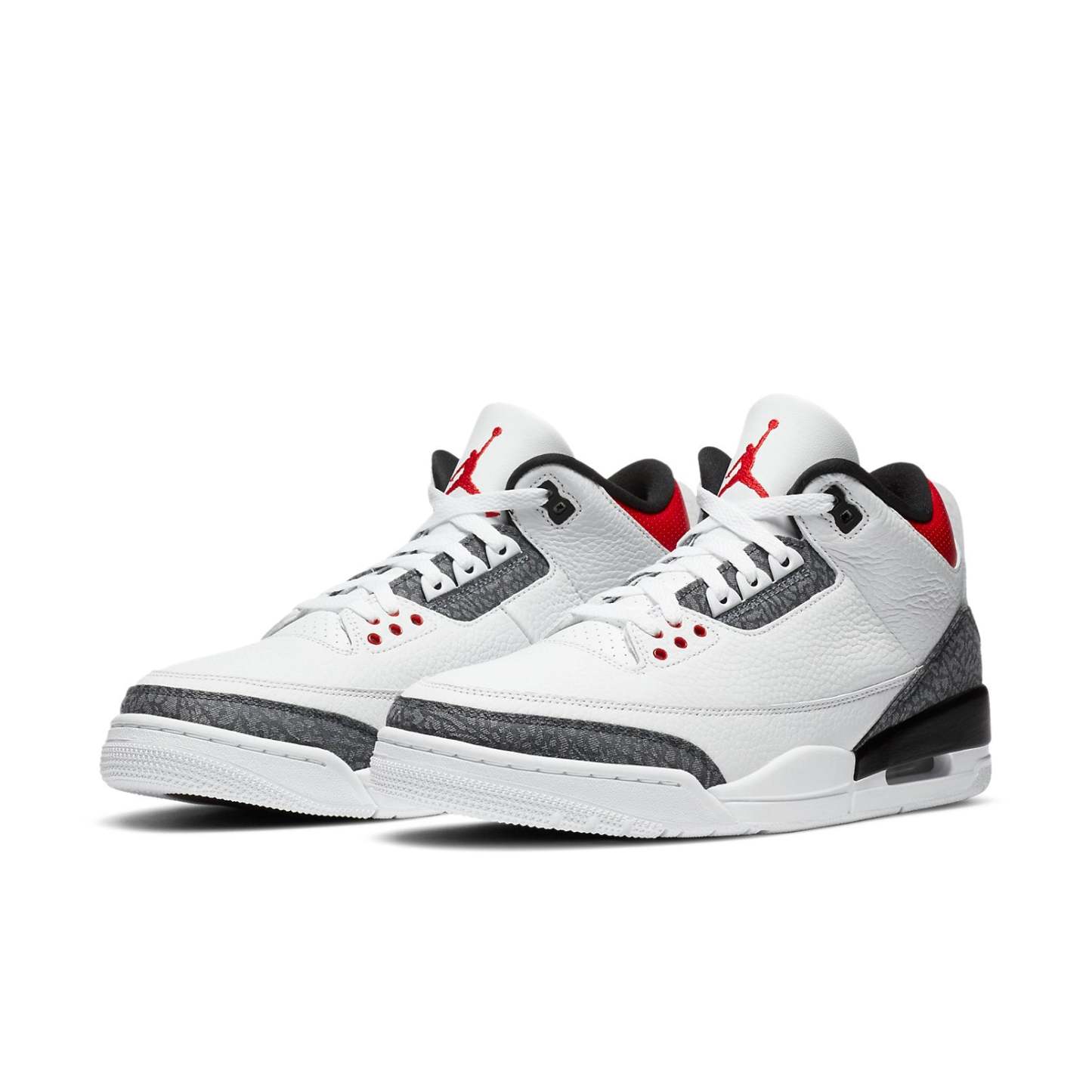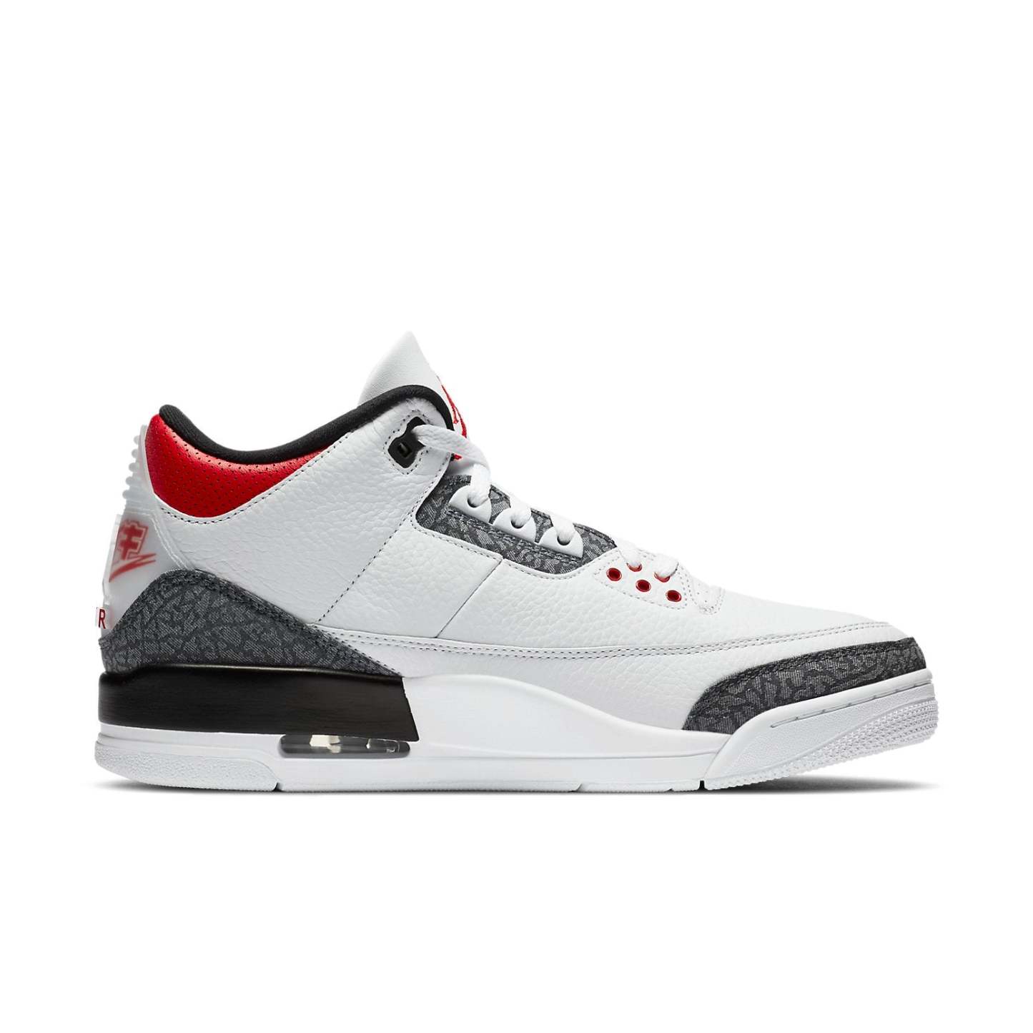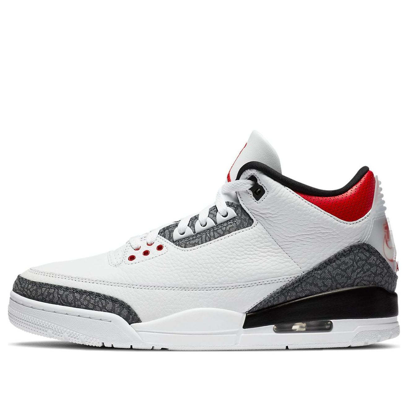 As part of Jordan Brand's Summer 2020 lineup, the Air Jordan 3 Retro Denim "Fire Red" features a white leather upper accented by the signature elephant print. Special details include the translucent heel tab with red Nike branding on it. In this Japan-exclusive edition, the Japanese Nike branding plus Swoosh give out a cozy and nostalgic feel.