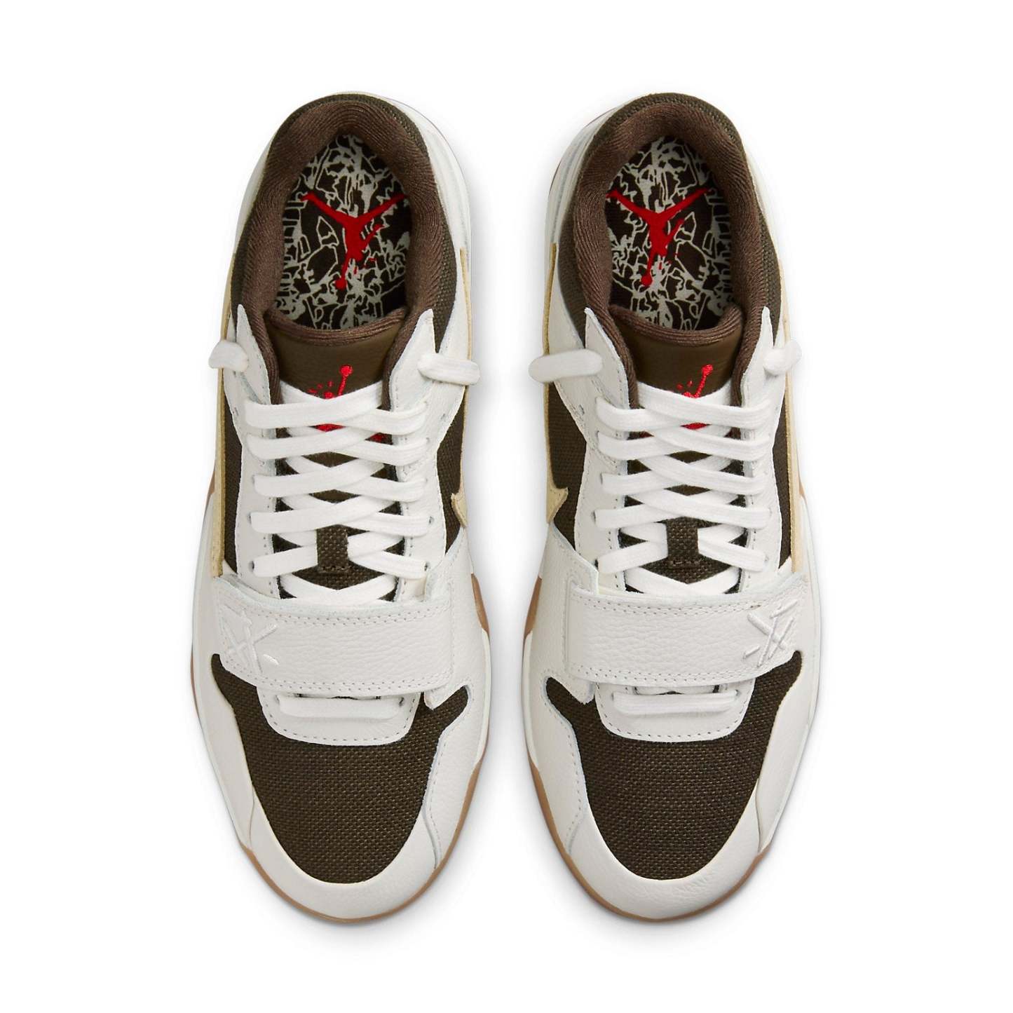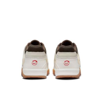 The Jordan Jumpman Jack TR ‘Sail’ presents an earthy colorway, embodying Travis Scott’s premier signature style. Crafted with care, these sneakers feature a dark brown canvas upper, complemented by off-white leather overlays and a beige reverse Swoosh on the lateral side. The traditional lace closure and adjustable midfoot strap ensure a secure fit. Vibrant crimson accents adorn the Jumpman icon atop the tongue and the Cactus Jack face logo stamped on the back heel