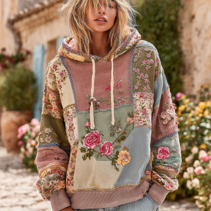 Vintage Rose Floral Patch Comfortable Warm Hoodie
